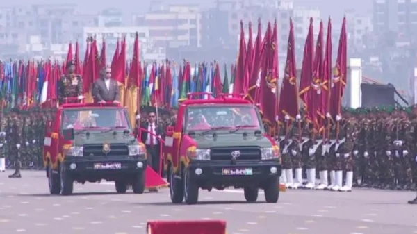 দেশ সকাল অনলাইন। বর্ণাঢ্য কুচকাওয়াজে স্বাধীনতা উদ্যাপন বাংলাদেশের অভ্যুদয়ের ৫৫তম বার্ষিকী উদ্যাপনে তেজগাঁওয়ে পুরাতন বিমানবন্দরের জাতীয় প্যারেড স্কয়ারে কুচকাওয়াজ শুরু হয়েছে। আজ বৃহস্পতিবার স্বাধীনতা ও জাতীয় দিবসের কুচকাওয়াজে উপস্থিত হয়ে ...বিস্তারিত পড়ুন